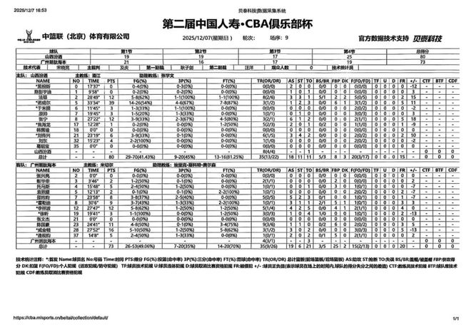 CBA俱乐部杯晋级八强山西汾酒8073战胜广州朗肽海本