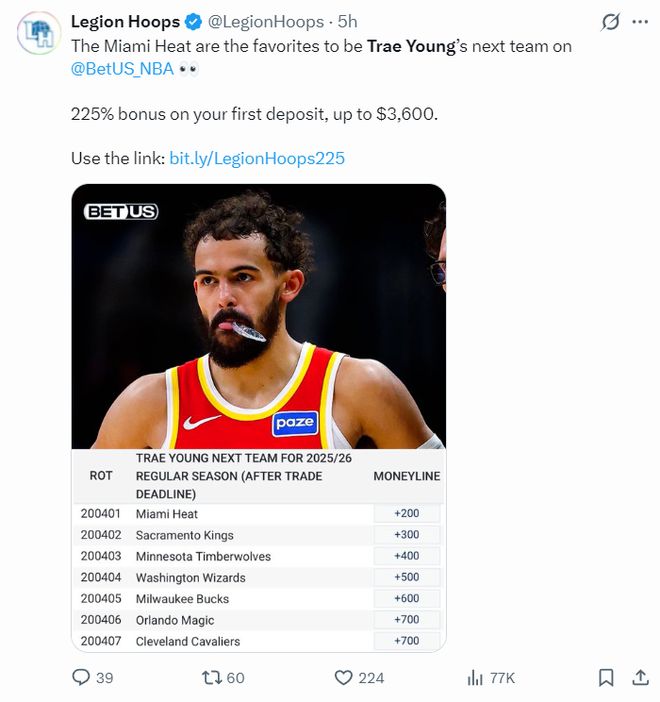 就目前来看,特雷杨的下家赔率:热火第一、国王第二、森林狼第三、奇才第四、雄鹿第五、魔术第六、骑士第七。