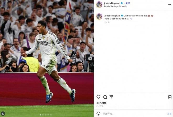 这场胜利的关键,无疑是贝林厄姆的致命一击。赛后,这位进球功臣不仅通过社交媒体晒出庆祝照,配文 “哦我是多么想念这(种感觉)。马德里前进,无需赘言!”,表达了对胜利的渴望和对球队的信心,还在接受采访时分享了内心的激动。他表示:“这种感觉太棒了。时隔这么久之后,终于能在欧冠的重量级比赛中踢球,并打进致胜一球,我一直梦想着这一刻。” 同时,他也回顾了皇马近年的欧冠表现,“我加盟皇马的第一个赛季,在欧冠联赛后期的淘汰赛阶段,我们踢得并不好,但我们仍然找到了获胜的方法。去年,我们没能做到这一点,当我们踢得不好时,我们受到了惩罚。这就是为什么我们需要踢得更好,进更多球。”